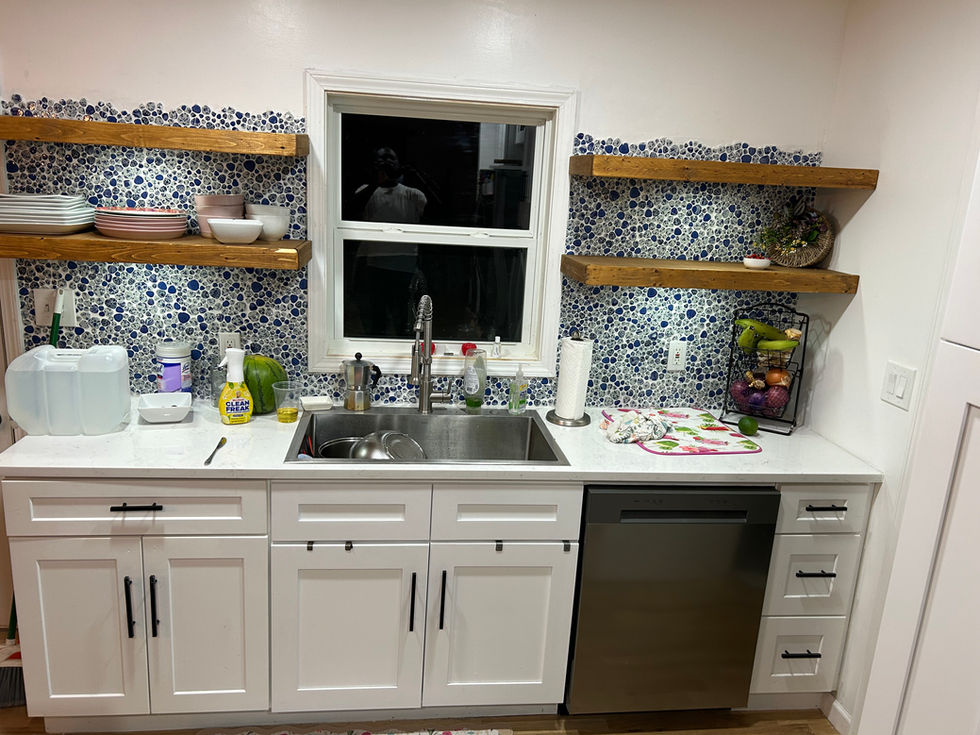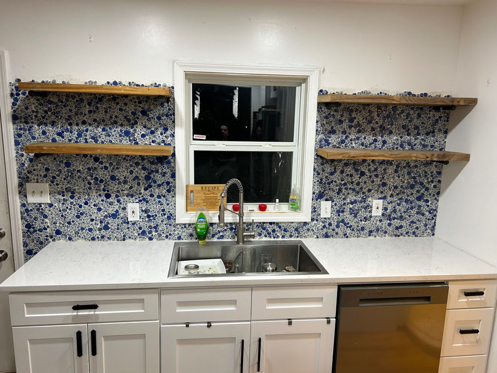 At FLOJAYKEN HANDYMAN SERVICES LLC, we crafted a Latin-themed backsplash with custom floating shelves, transforming a Greater Atlanta space into a lively, sophisticated environment. We make your spaces functional, stylish, and uniquely yours.